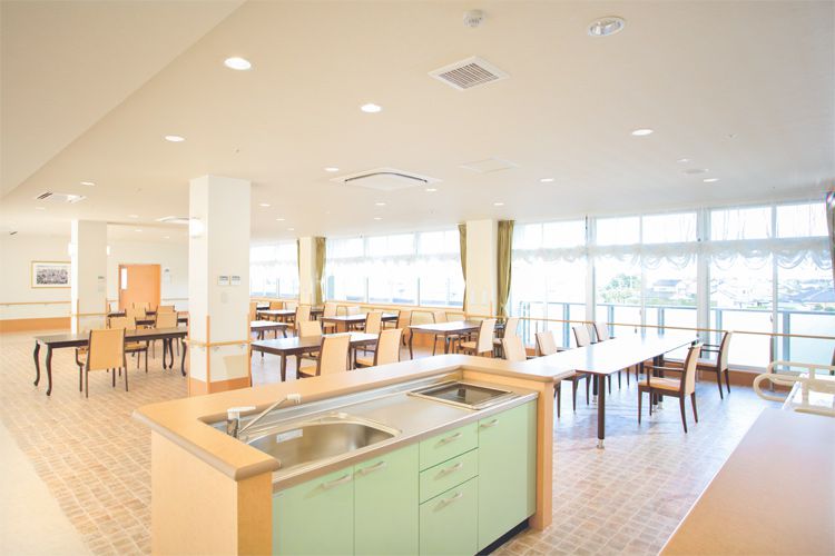 - 多目的ホール入所されている皆様の「憩いの場」です。優しい光と眺めの良い風景で四季を感じてみてください。